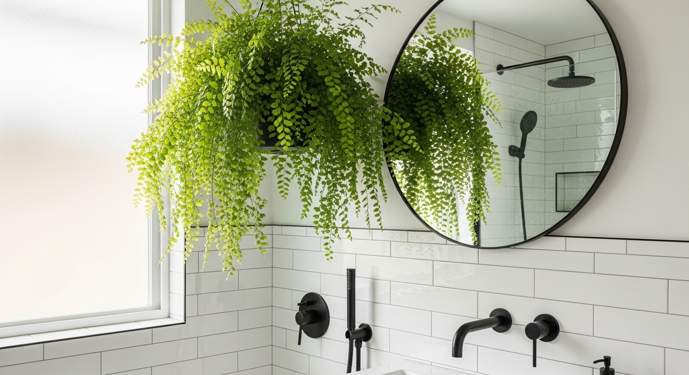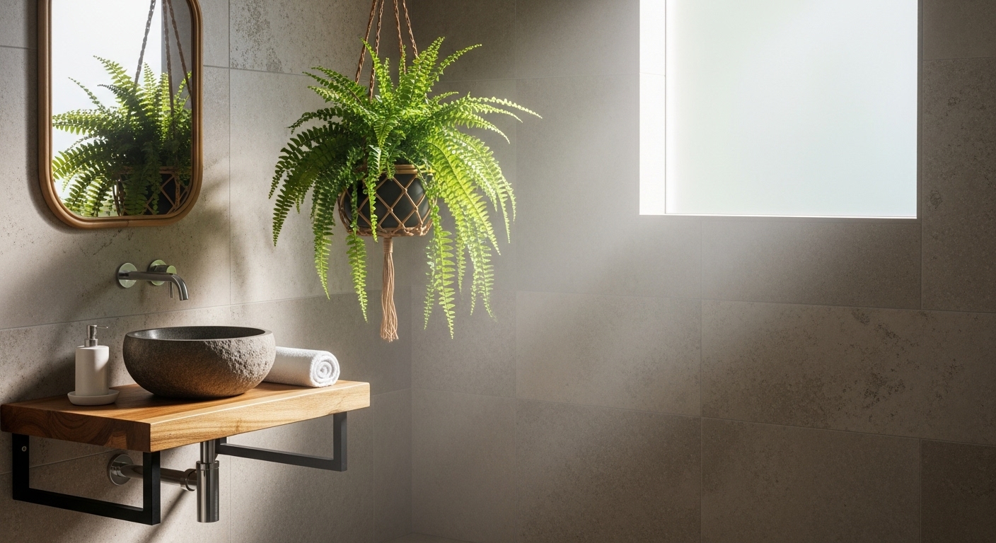 Ferns are nature’s humidity specialists. Beyond the Boston fern, varieties like maidenhair or asparagus fern thrive beautifully in steamy bathrooms. Their delicate fronds create soft movement and a lush texture that pairs perfectly with smooth tiles and mirrors.