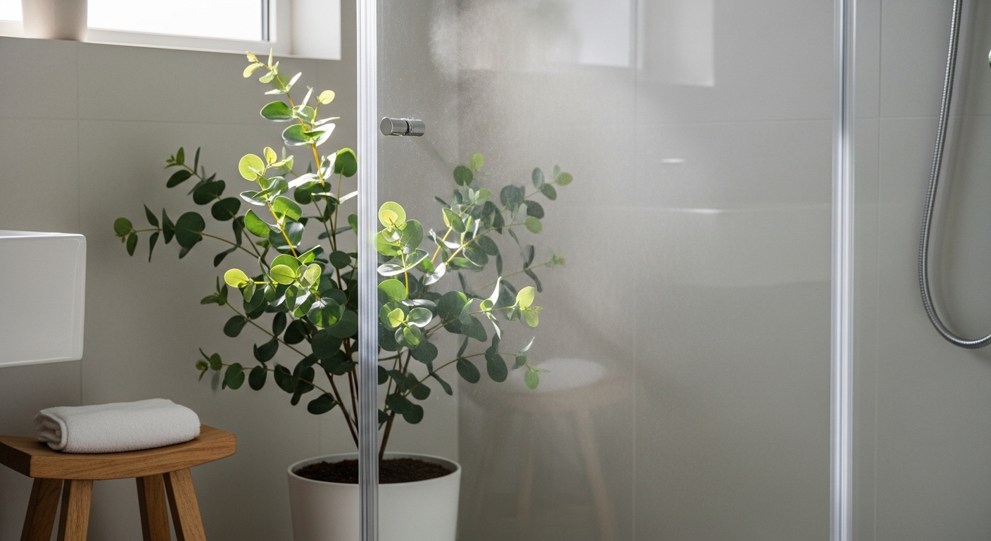 If you can’t keep a live potted eucalyptus, try fresh cuttings hung from your showerhead for a quick spa effect. For planted versions, use a bright, sunny window and a pot with good drainage.
