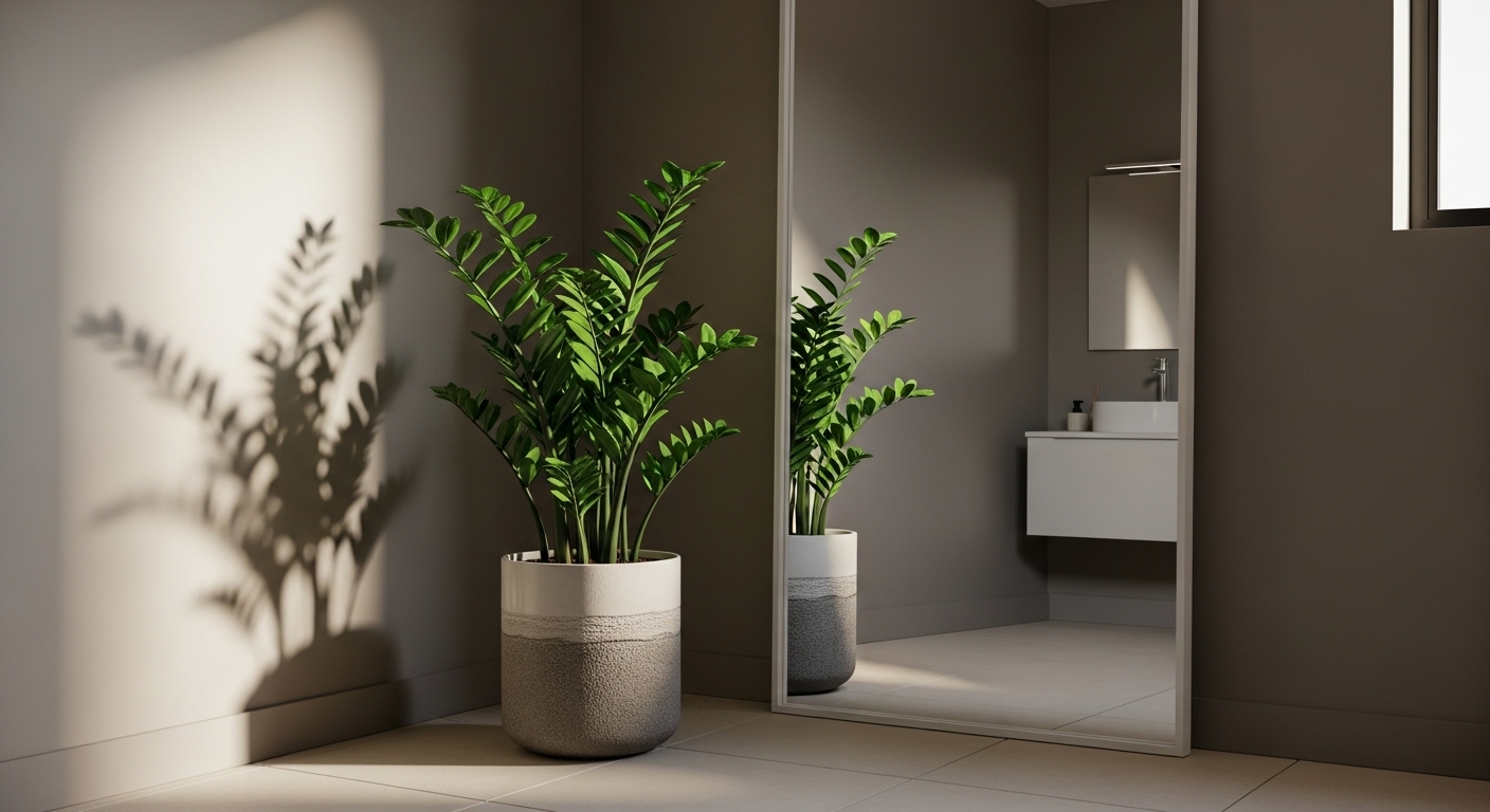 The ZZ plant is practically foolproof. Its thick, waxy leaves store water, making it perfect for bathrooms where you might forget to water regularly. It tolerates low light but still looks lush and vibrant.