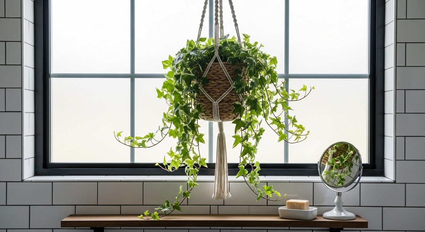 English ivy adds a romantic, old-world charm to your bathroom while actively filtering airborne mold and mildew. It loves cooler temperatures and moderate humidity, making it ideal for bathrooms that get occasional sunlight but stay well-ventilated.