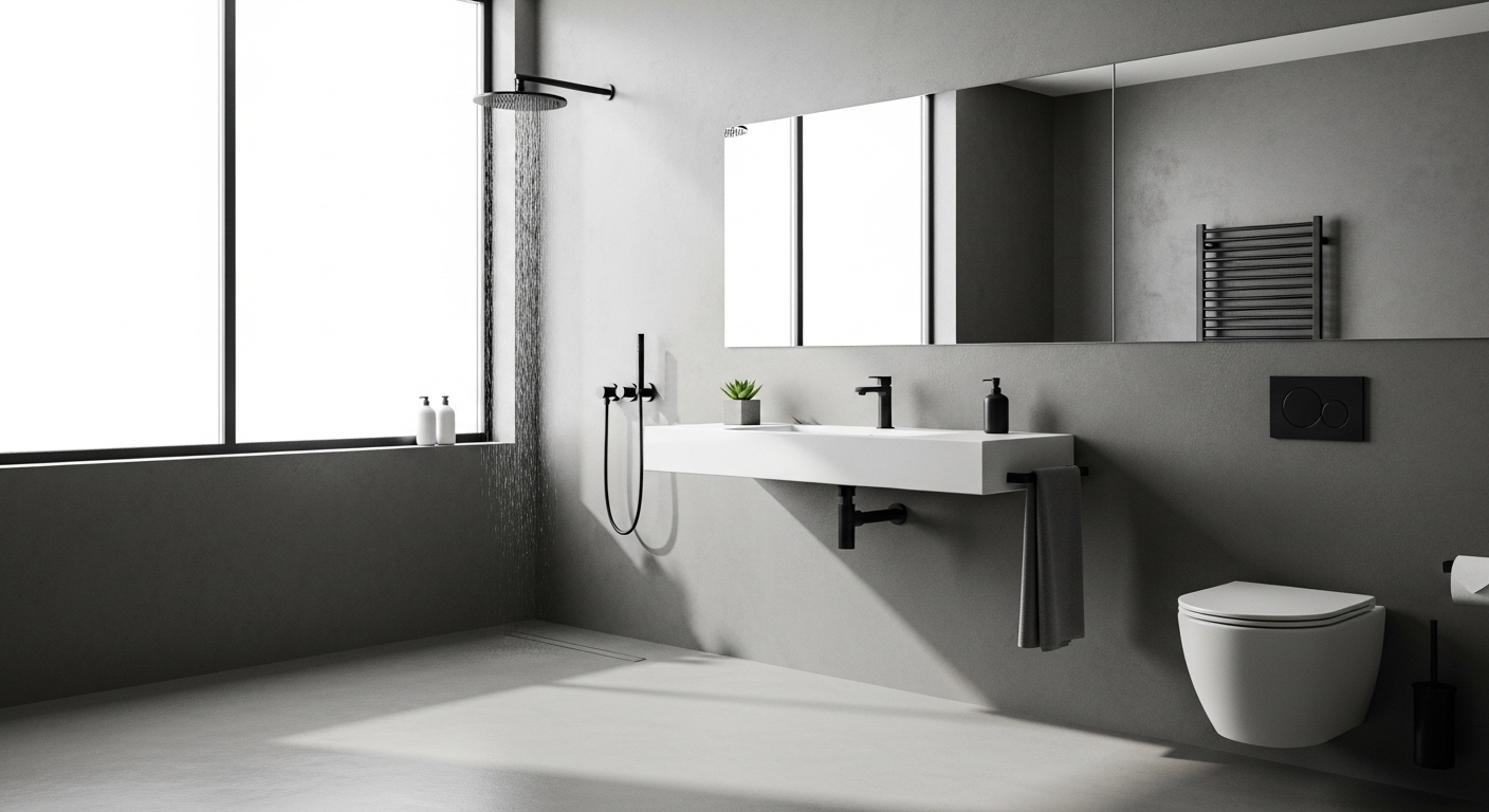 Pro Tip: Pair with matte black hardware, floating vanities, and frosted glass to emphasize the modern edge of concrete.