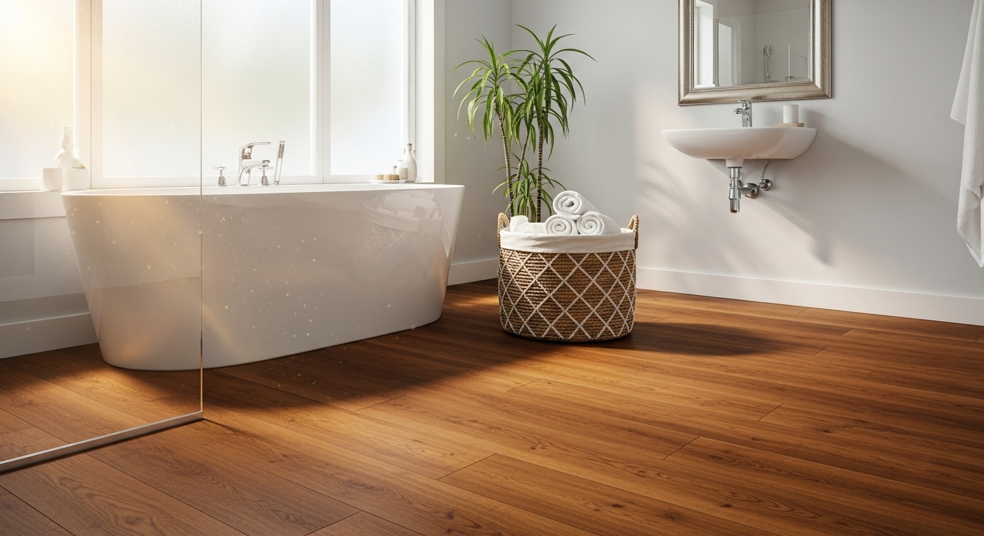 LVP is waterproof, scratch-resistant, and cushioned for comfort — making it ideal for family bathrooms. Choose a wood tone that complements your bathroom palette: light oak for a Scandinavian feel, espresso for a sophisticated look, or driftwood gray for a coastal vibe.