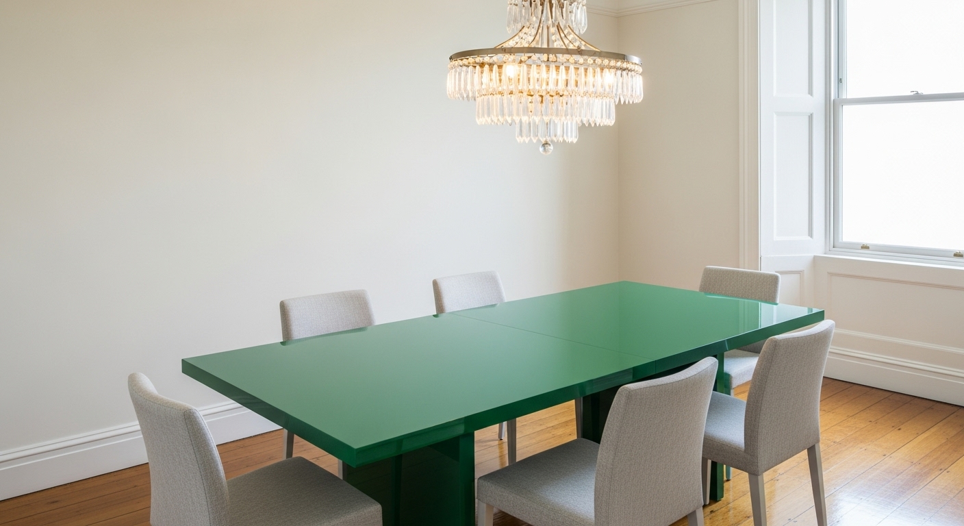 Instead of painting walls, make your furniture the design hero. An emerald green dining table, buffet cabinet, or sideboard becomes an instant focal point.
