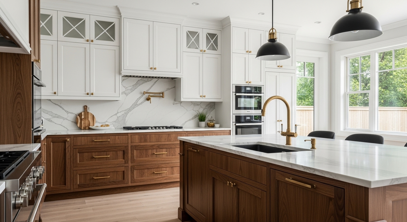 Why it works: Contrast creates depth, making your cabinetry feel intentional and layered rather than uniform.