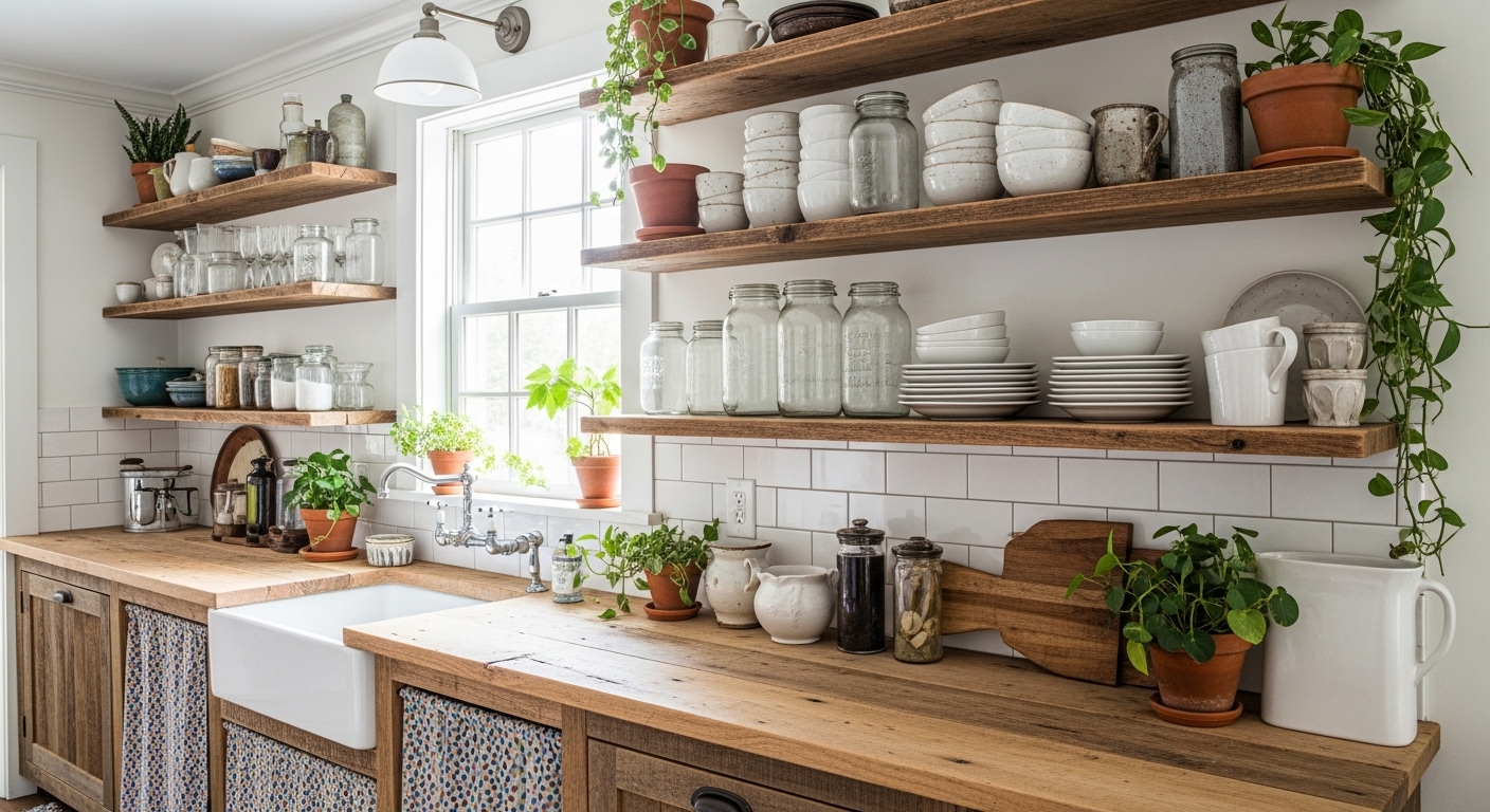 Open shelving transforms ordinary storage into everyday art. Instead of hiding your dishes, it lets you display them beautifully while keeping essentials close at hand.