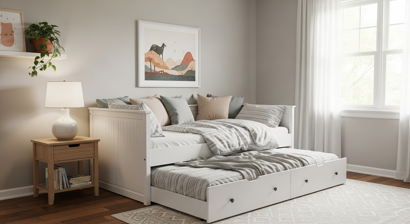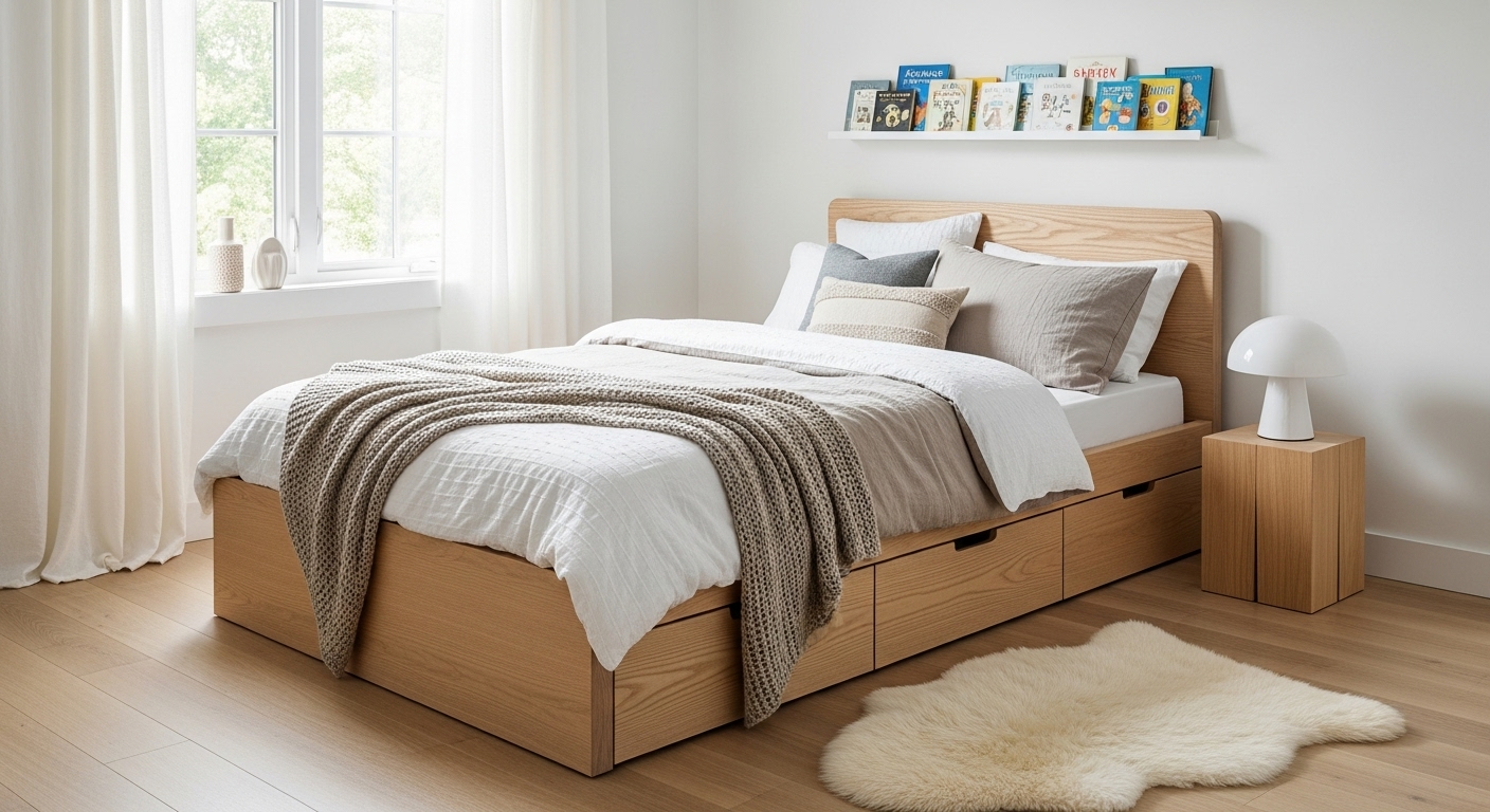 In modern family homes, every inch matters. That’s where multi-functional furniture shines — beds with drawers, desks with lift-up lids, or benches with interior storage. Think of a sleek daybed that opens to reveal hidden bins or a compact play table concealing art supplies beneath its surface. These pieces make tidying quick and intuitive.