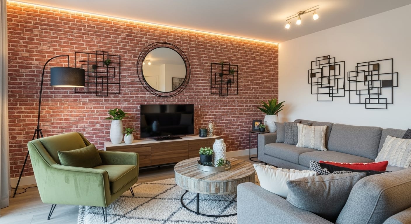 Love the brick look, but don’t have the real thing? Faux brick panels are your shortcut to instant industrial charm — no heavy construction required. Modern faux panels mimic authentic brick texture so convincingly that most guests won’t notice the difference. Available in a range of tones — from rustic red to soft gray — they’re lightweight, affordable, and DIY-friendly.