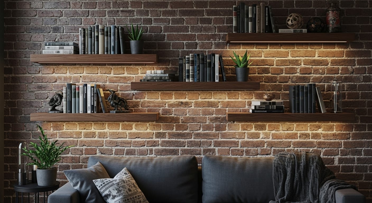 Steel or wooden floating shelves anchored into the brick create a dramatic contrast between structure and smooth surfaces. The rugged wall texture becomes a backdrop for curated objects, adding visual storytelling to your space. You can even integrate recessed lighting above shelves to highlight displays and create nighttime ambiance.