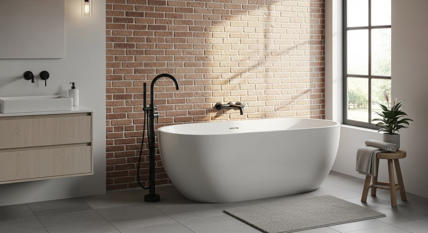 Bathrooms may not be the first place you think of adding brick, but the result can be stunning. A brick feature wall behind a freestanding tub or vanity brings warmth and depth to sleek tile or stone surfaces.