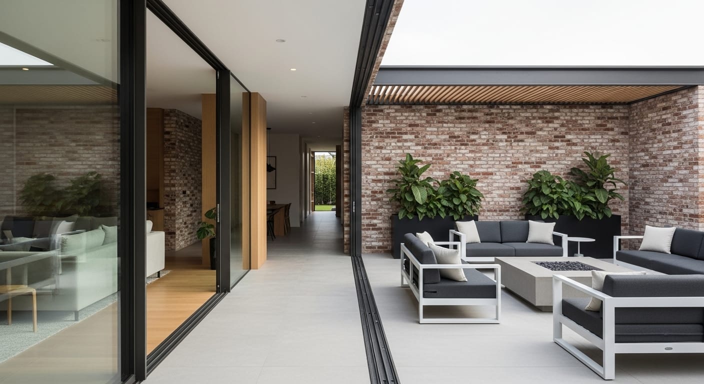 One of the most modern design moves today is blurring the lines between indoors and out. Extending your brick wall from interior to exterior creates seamless visual continuity and architectural cohesion.