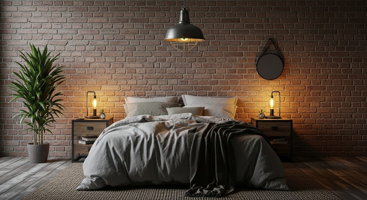 Go for warm red tones if you want an earthy, inviting feel, or choose white or gray bricks for a serene aesthetic. Layer the look with textured bedding, soft lighting, and artwork to maintain balance. Brick also pairs beautifully with upholstered headboards or natural linen — the contrast of hard and soft textures makes the room feel complete.