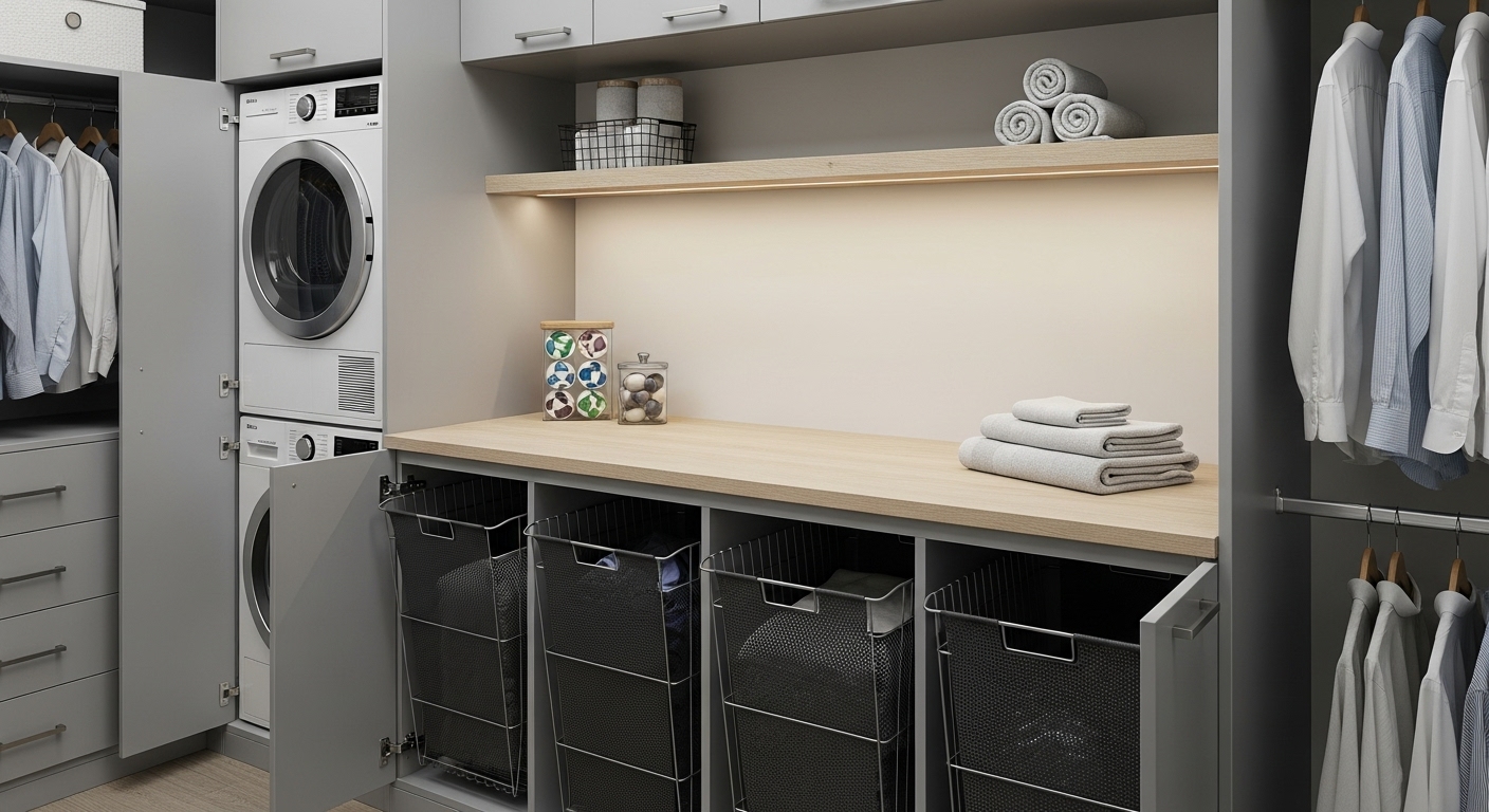 Integrate laundry functionality directly into your closet to simplify routines. Pull-out hampers, hidden ironing stations, or compact washer-dryer units behind cabinetry make daily life smoother. Choose cabinetry materials that resist humidity—laminate or treated wood—and keep ventilation discreet.