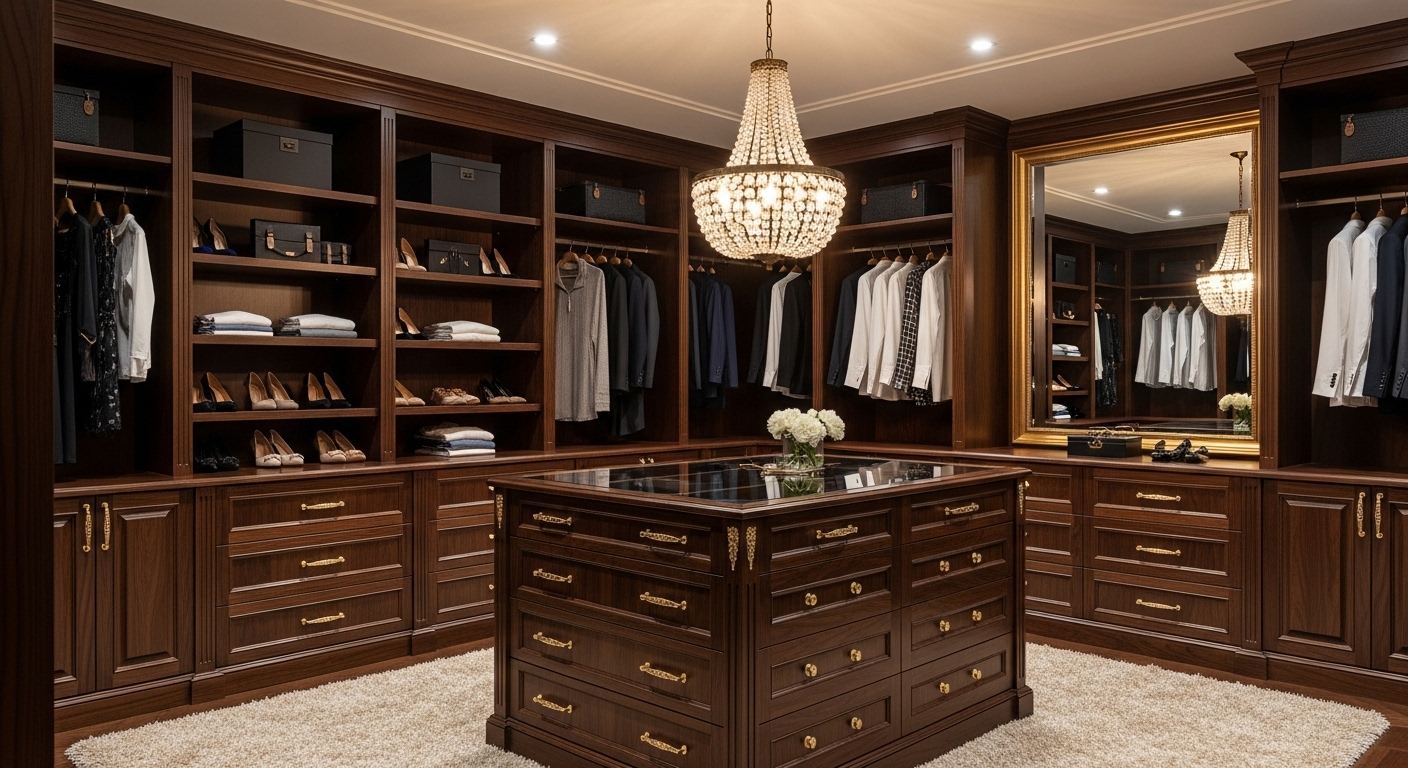 Choose materials that echo luxury—quartzite countertops, leather drawer pulls, or high-gloss lacquer finishes. Include shallow drawers for jewelry and ties, and deeper drawers for sweaters. Add soft-close mechanisms for quiet elegance.
