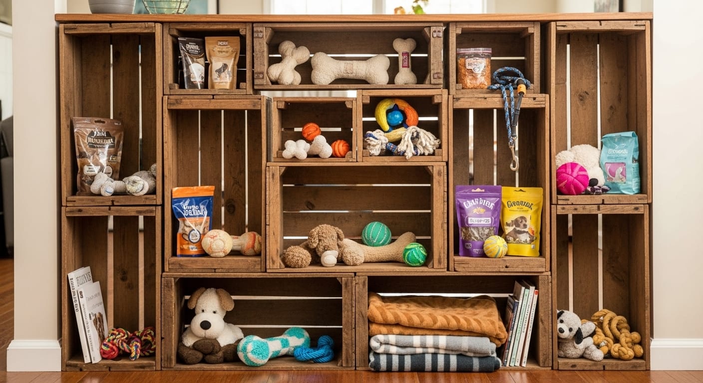 If you are dealing with cluttered pet supplies, a wall-mounted crate divider offers a clever way to organize them while creating a stylish barrier. This solution makes everything from toys to treats accessible without sacrificing visual appeal. Furthermore, repurposing vintage crates adds an eco-friendly element to your decor.