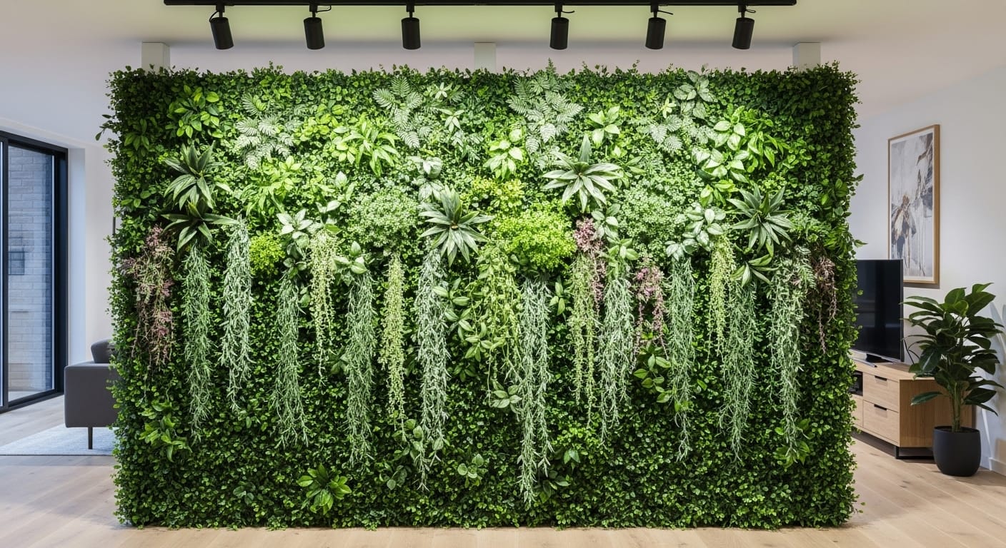 For a low-maintenance option, use high-quality artificial plants. Alternatively, you can opt for real, pet-safe plants like herbs or certain succulents. Incorporate a mix of textures, such as ferns and trailing vines, to add visual complexity. Frame the green wall with decorative panels or minimalist planters to match your decor style. You can change out plants seasonally or add decorative stones for variety. For small spaces, vertical garden panels can be scaled down or combined with other wall decor.