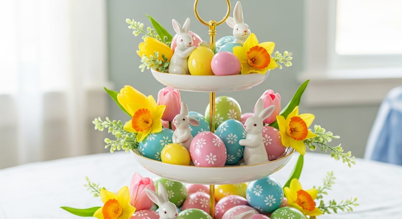 To celebrate the joys of spring and Easter with charming decor, festive themed items can instantly brighten your tiered tray and create a fresh, cheerful atmosphere. This approach is perfect for family gatherings, brunches, or simply adding a splash of seasonal fun to your home. It is also a simple way to embrace the spirit of renewal.