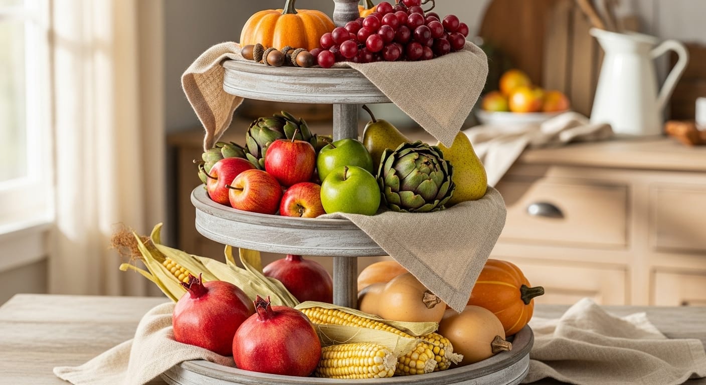 1. Seasonal Charm with Faux Fruit and Vegetables