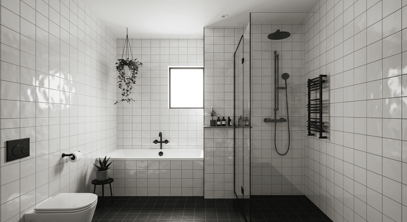 Looking to add another layer of depth to your design? Pairing glossy white tiles with matte black grout creates a stunning textural contrast. This simple trick makes your walls or floors far more interesting than a single-finish surface, playing with how light hits the room.