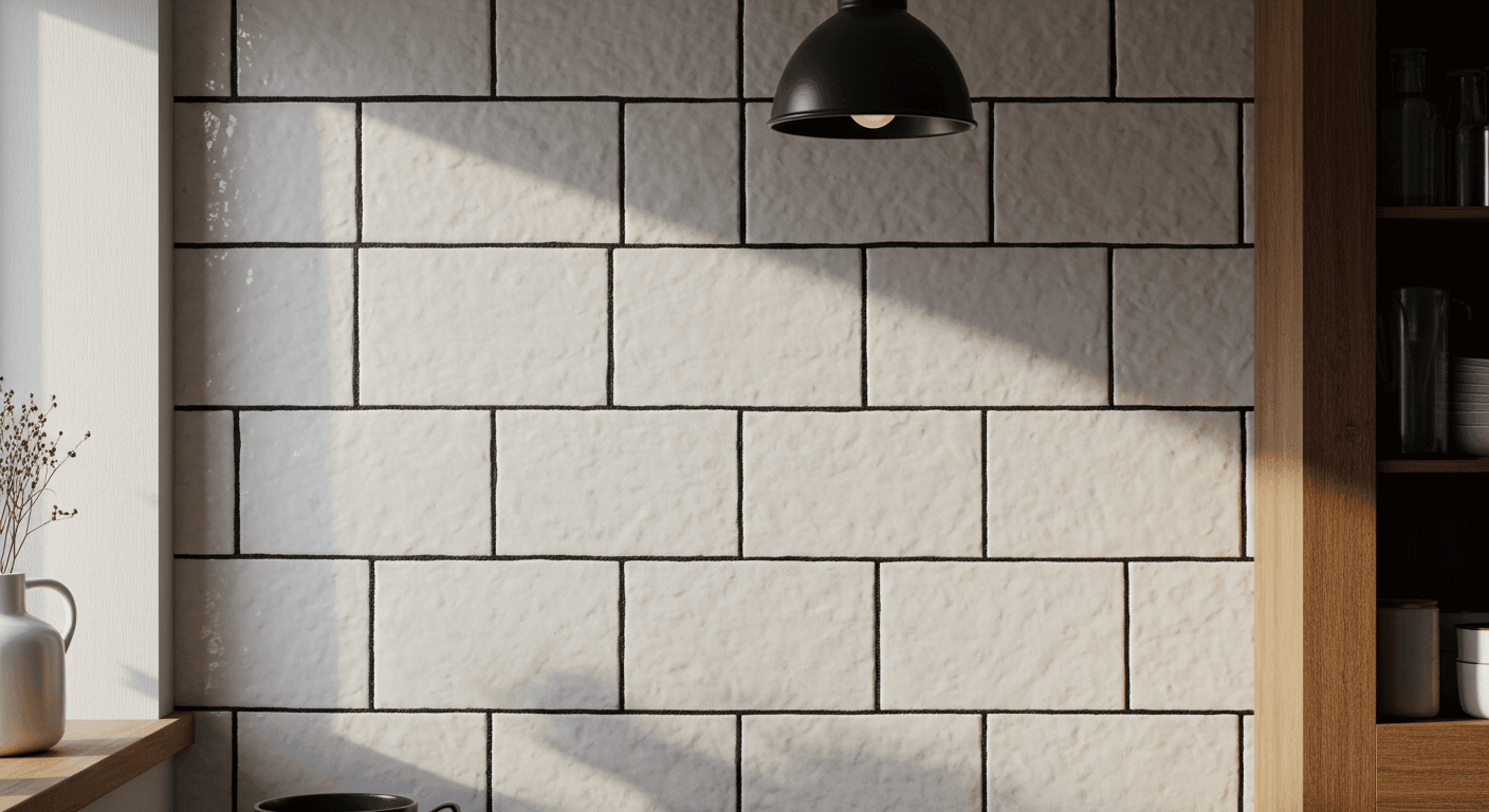 To create a space that feels warm, inviting, and full of character, try textured white tiles with black grout. This combination gives your room a rustic charm that feels anything but sterile. The tactile surface adds depth and a cozy, handcrafted personality.