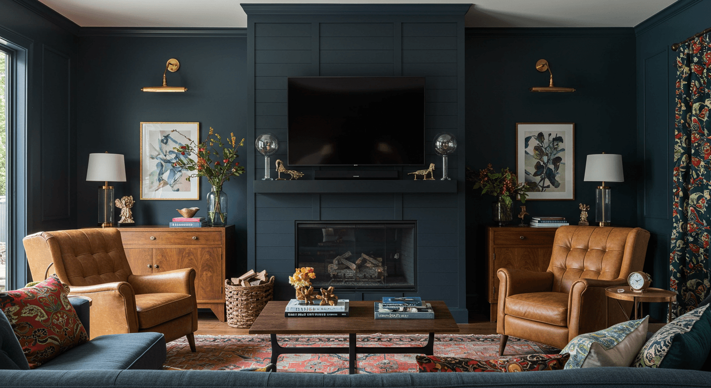 Make your fireplace the star with black shiplap framed by a bold accent wall in deep navy, emerald, or burgundy. The contrast adds drama and vibrancy, turning the fireplace into a sophisticated focal point. Perfect for modern, eclectic, or transitional interiors, this style can be complemented by jewel-toned textiles or metallic décor. Install the accent wall first, secure black shiplap panels with a border or molding, and use layered lighting to emphasize the contrast. Minimal surrounding décor allows the color pairing to shine, creating a confident, stylish statement.