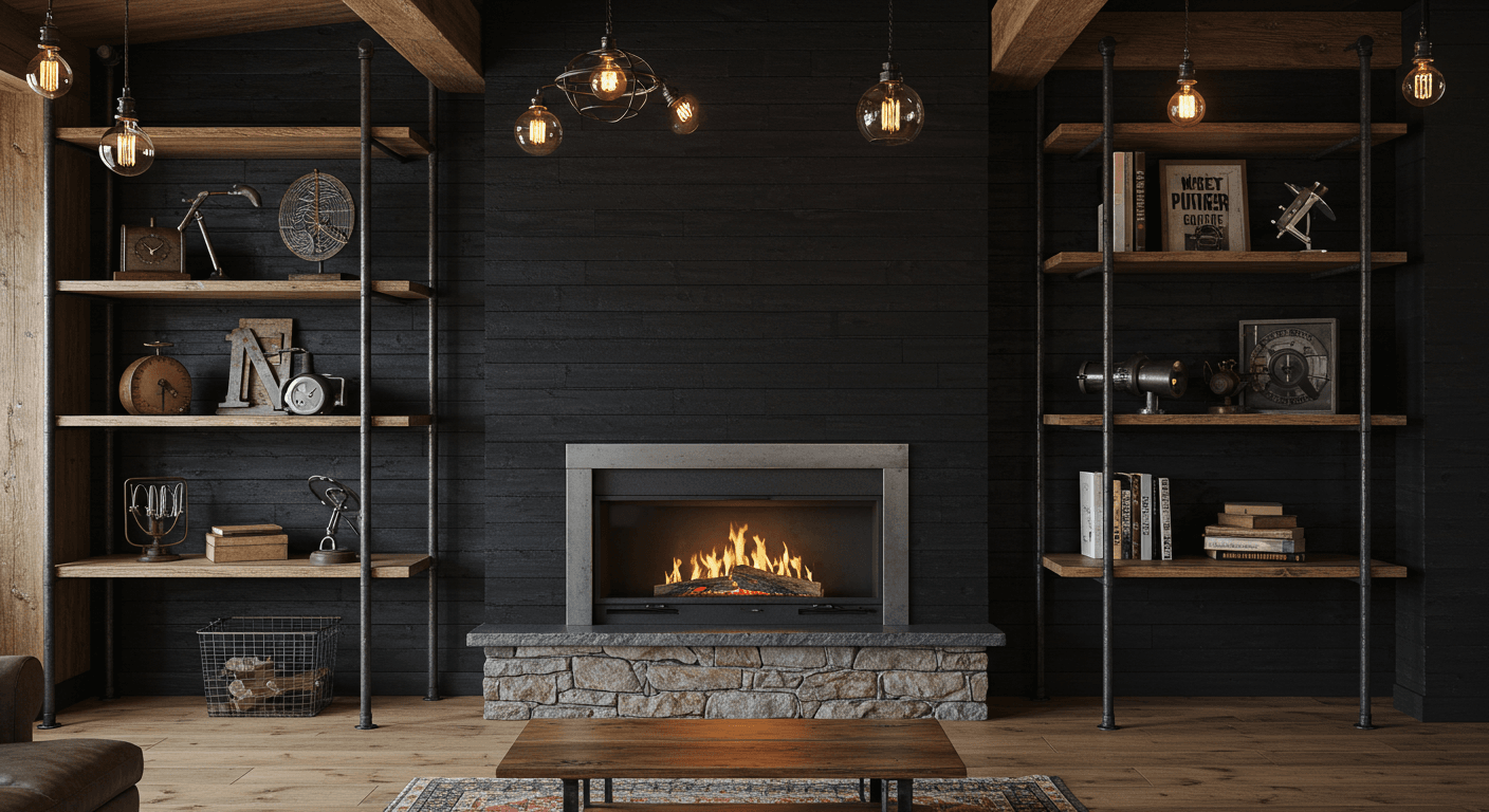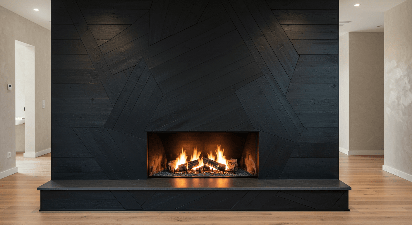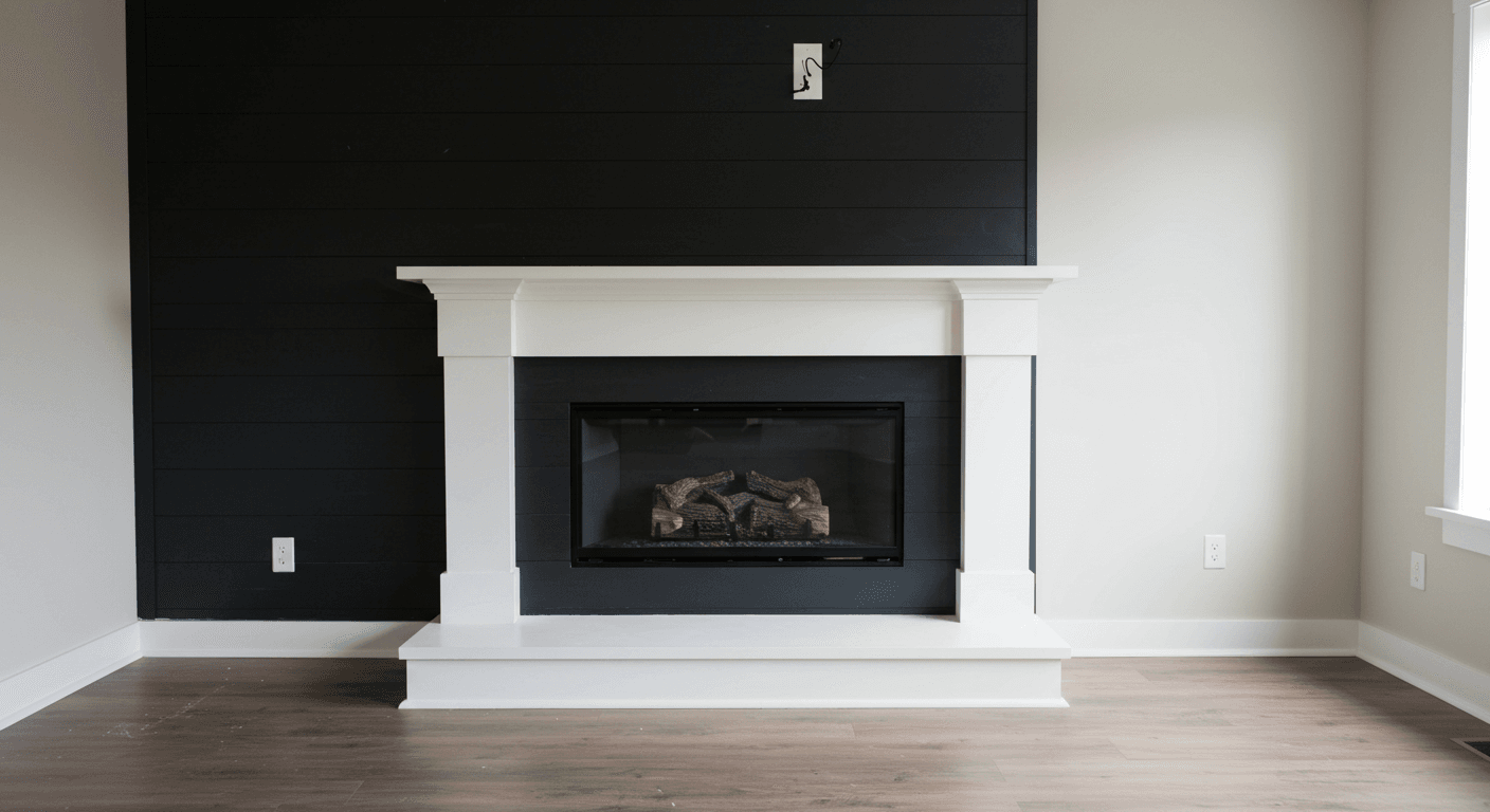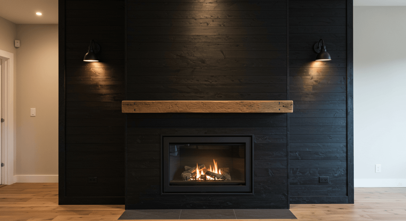 Combine rustic charm with contemporary edge using textured black shiplap and reclaimed wood accents. The tactile black panels paired with warm, weathered wood create depth and personality. This design is ideal for farmhouse, industrial, or eclectic interiors. Highlight textures with soft lighting and layer textiles for added warmth. Use heavy-duty brackets to secure wood accents and add subtle lighting to enhance contrast. Personalize with vintage metal hooks, baskets, or décor crafted from reclaimed materials. This blend of textures delivers a cozy yet stylish fireplace that feels both modern and rooted in tradition.