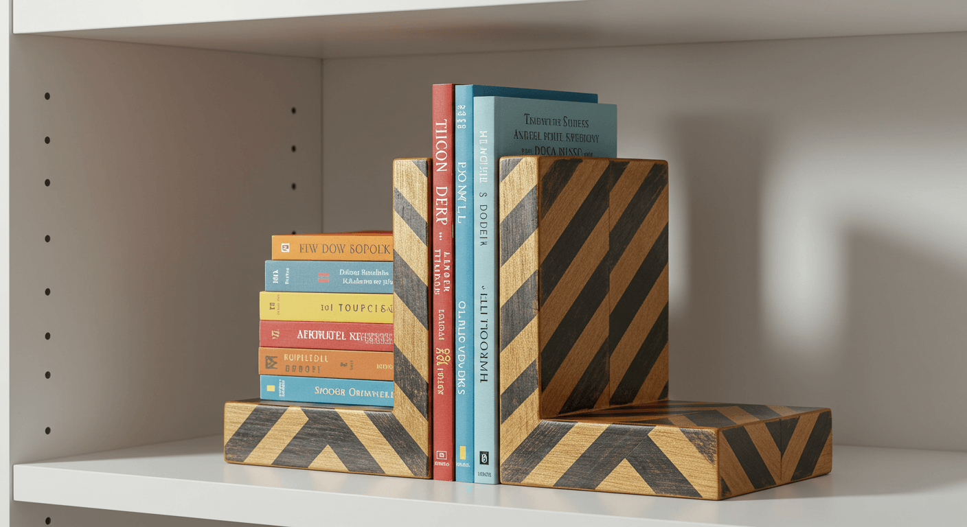 Imagine a pair of painted wooden or acrylic bookends featuring zigzag stripes in contrasting shades like black and white or bright orange and teal. The pattern creates a striking visual anchor on your shelf, drawing attention and adding a modern touch. The sturdy design supports your books effectively while also serving as a decorative element.
