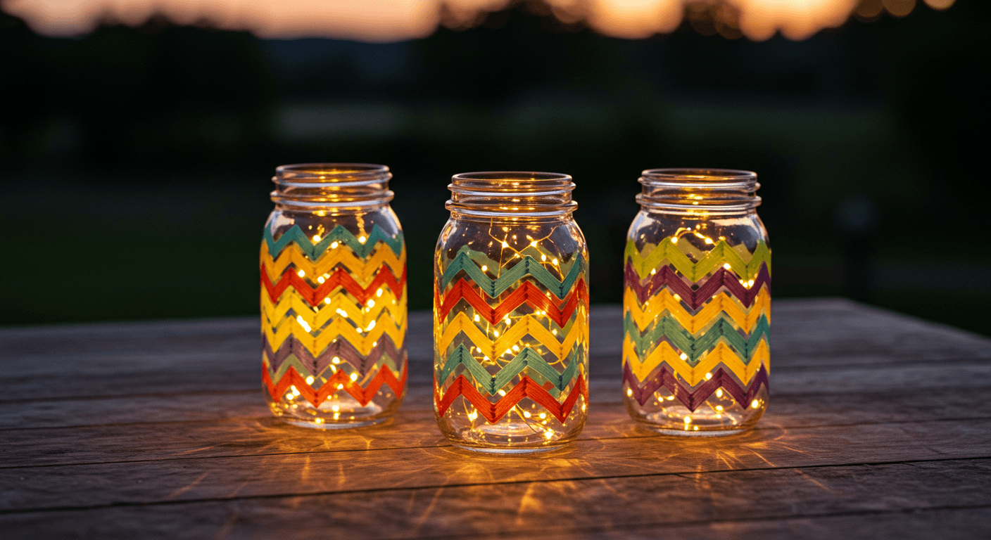 To add a cozy, colorful ambiance to outdoor gatherings or indoor spaces, consider decorating mason jars. While charming on their own, wrapping them with chevron patterns enhances their appeal. These DIY lanterns are simple, inexpensive, and customizable, making them perfect for creating a warm glow.