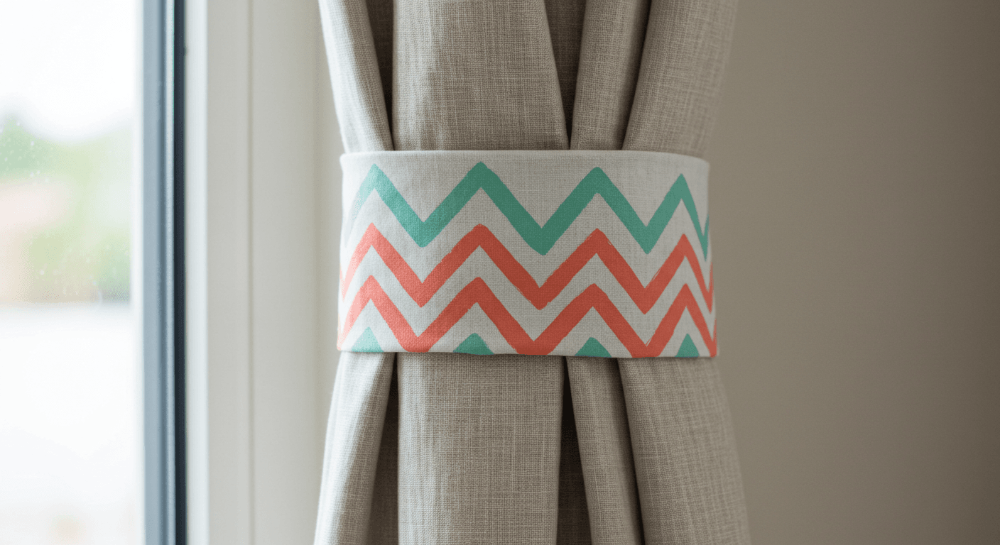 Visualize fabric tiebacks wrapped with chevron-patterned tape or painted with bold stripes in colors like coral and mint. When used to hold back curtains, they frame the window with a lively, geometric design. The pattern adds a modern element that complements your decor, making even functional items look intentional and stylish. The vibrant colors and crisp lines create a cheerful and cohesive appearance.