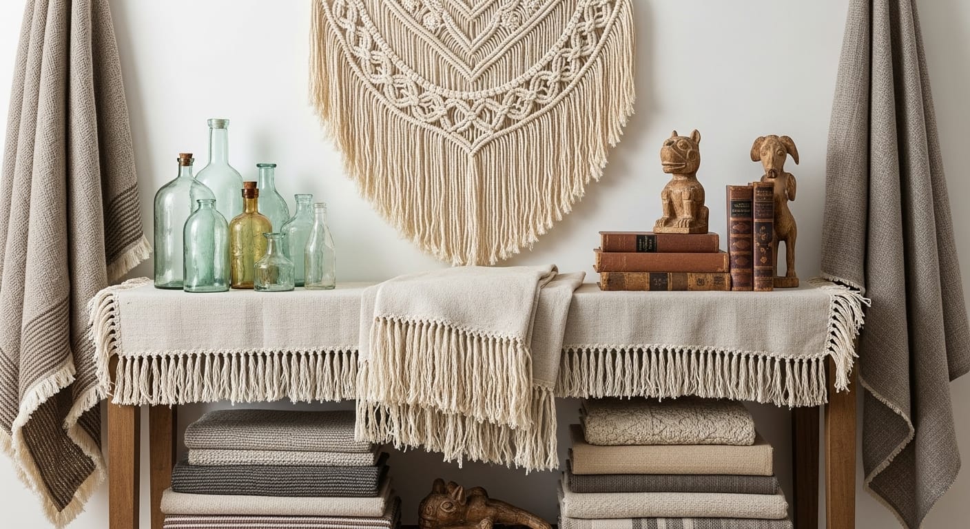 Boho consoles offer eclectic warmth with functional storage. Woven baskets, layered textiles, and decorative accents enhance charm.