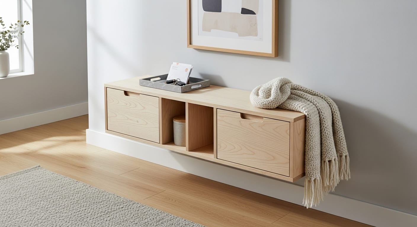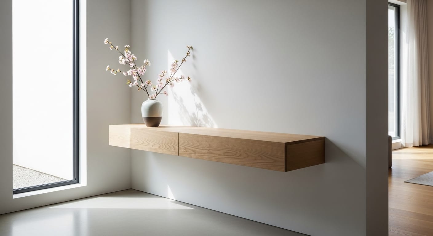Floating consoles free floor space and create a modern, airy aesthetic. Perfect for small rooms or hallways.