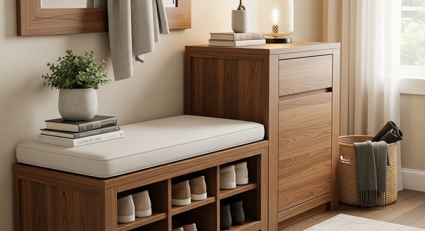 Combine function and comfort with a console that stores shoes and provides seating. Ideal for entryways.