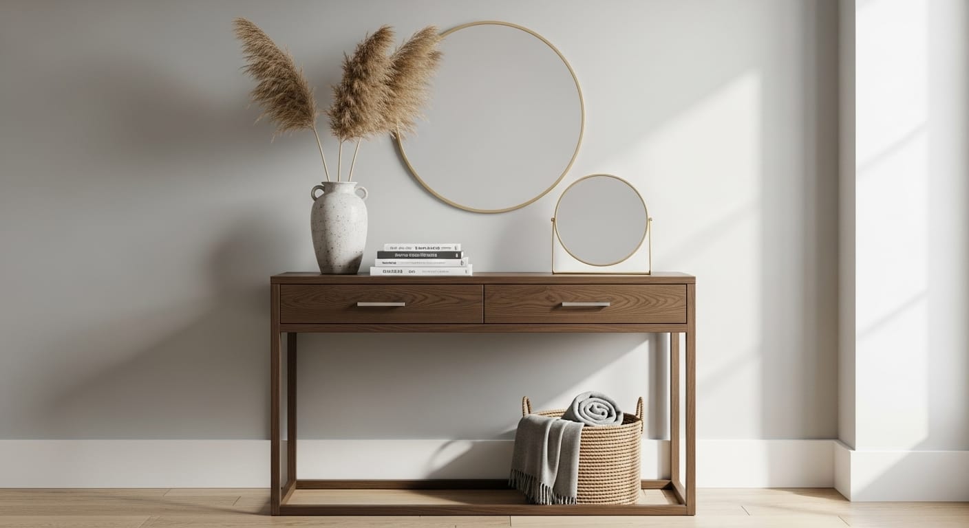 Scandinavian-style consoles create bright, airy spaces with minimalist charm. Light wood and clean lines emphasize calm and organization.