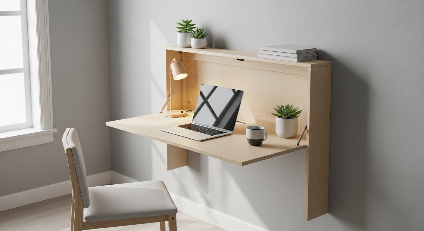 Maximize small spaces with a fold-down desk console. It transforms narrow corridors or apartments into a functional workspace.