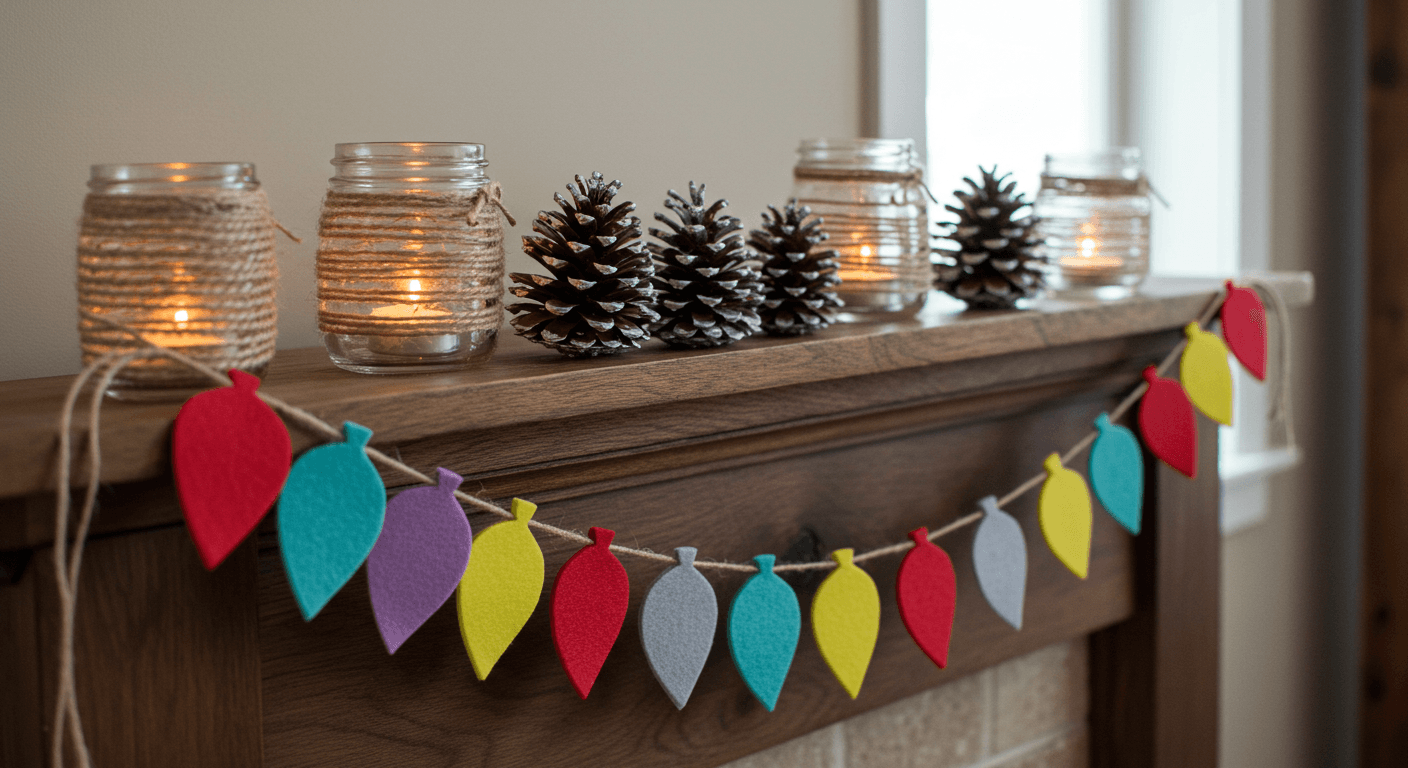 Sometimes, the most memorable decorations are the ones you make yourself. A DIY craft-inspired mantle is not only budget-friendly but also adds a personal, playful element to your home.