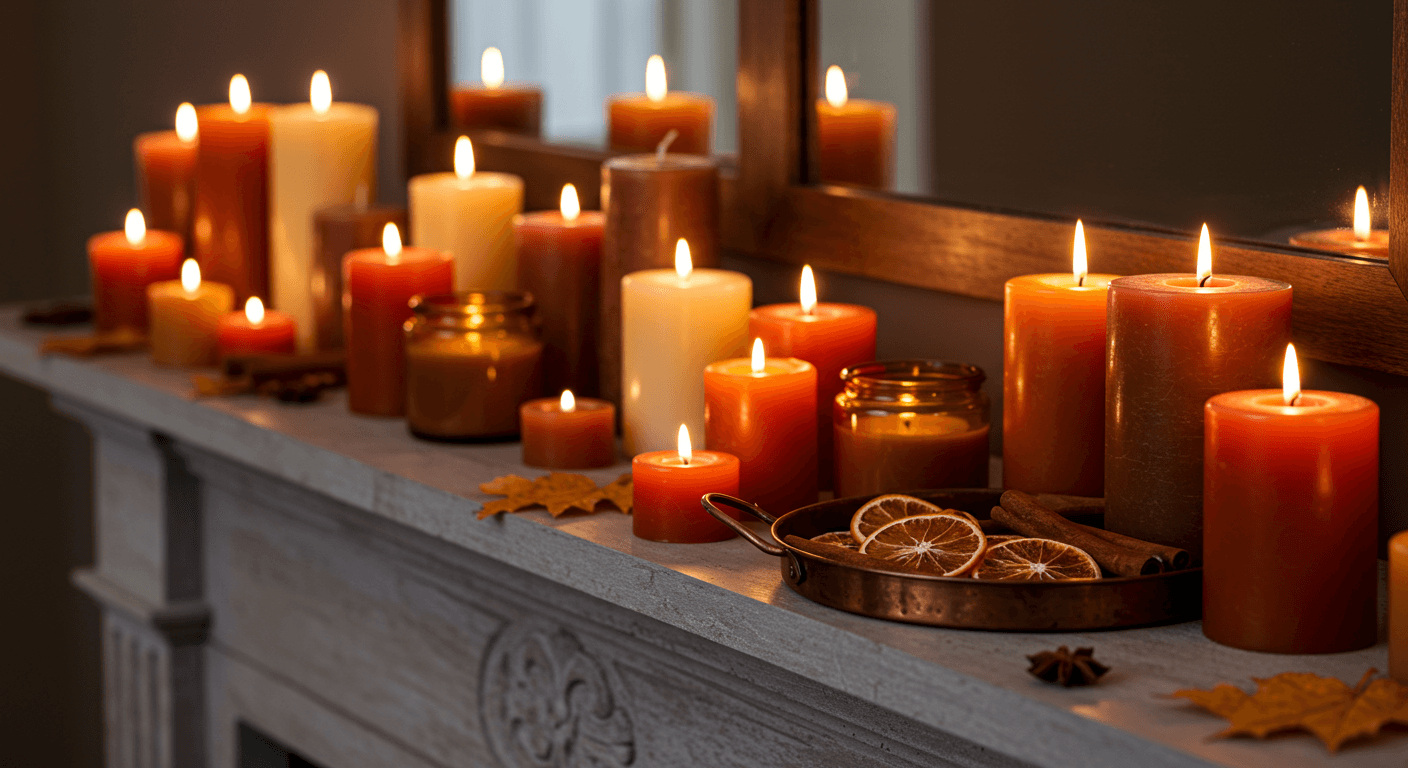 If autumn had a scent, it would be pumpkin spice—warm, cozy, and instantly comforting. Turning your mantle into a candle haven not only adds beauty but also fills the room with seasonal aromas.