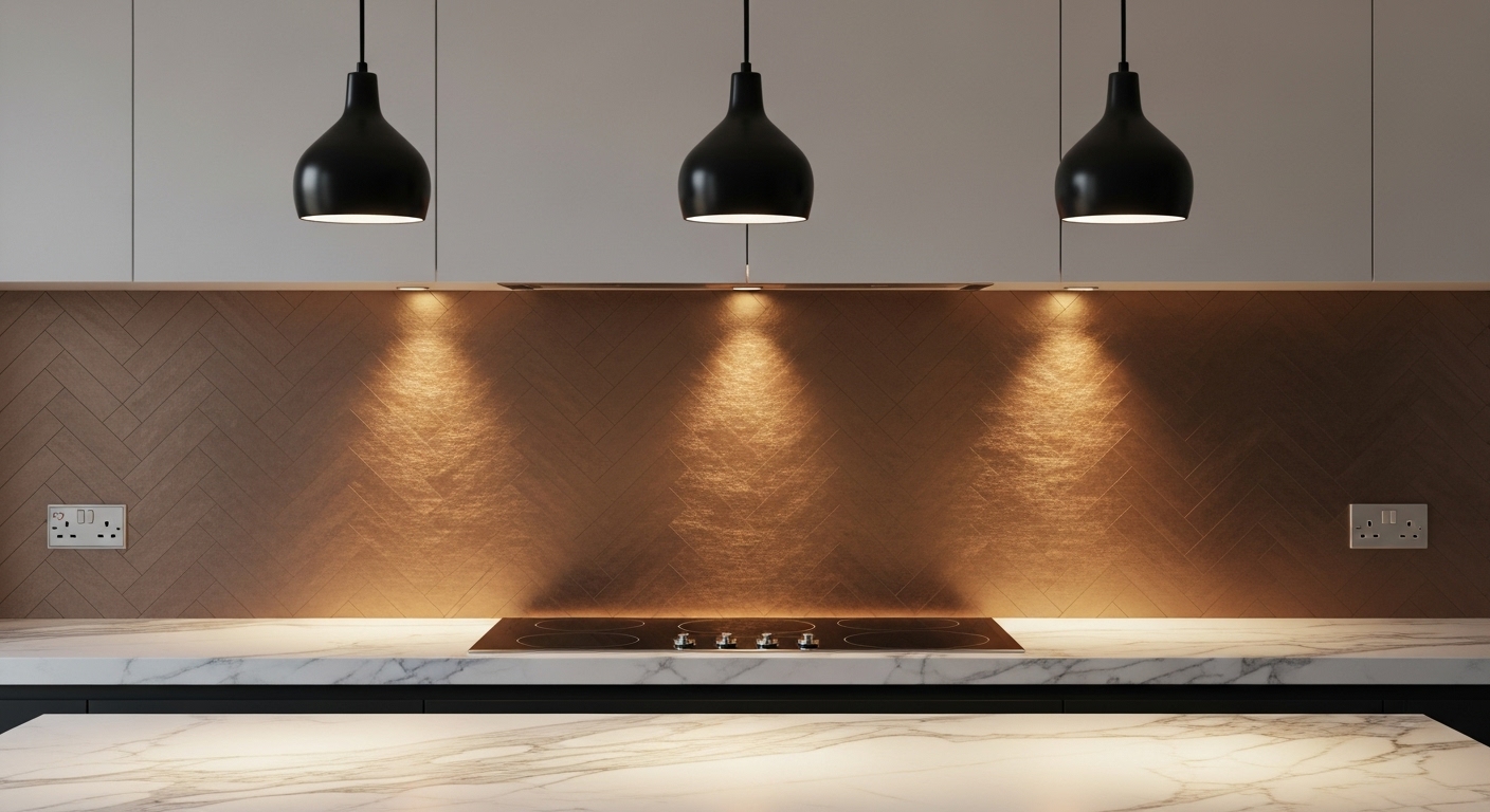 They’re especially stunning when used sparingly — behind a range or above a bar area — where they catch the light and draw the eye.