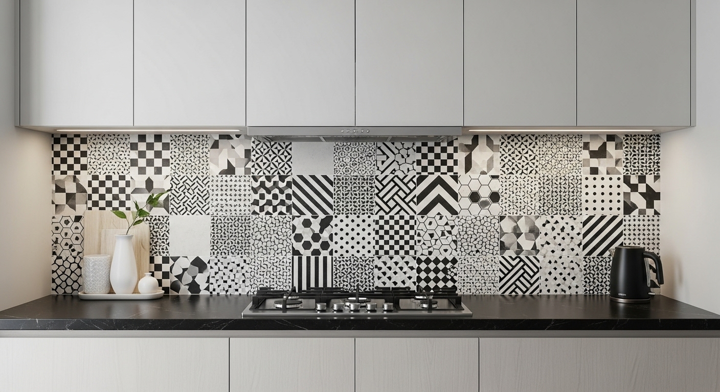 Geometric tiles turn your backsplash into a visual focal point—where form and function meet design drama.