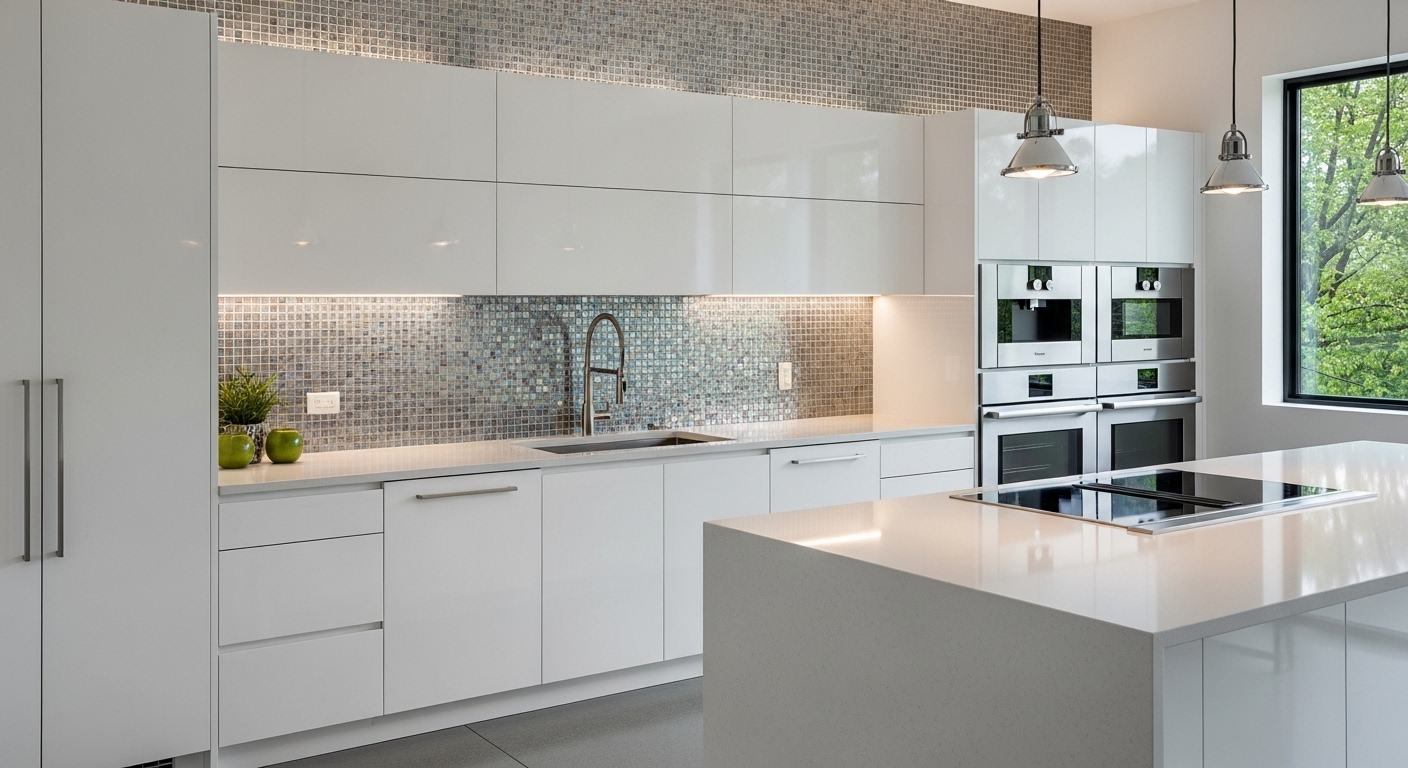 Mosaic glass backsplashes feel like modern art installations — refreshing, polished, and full of personality.