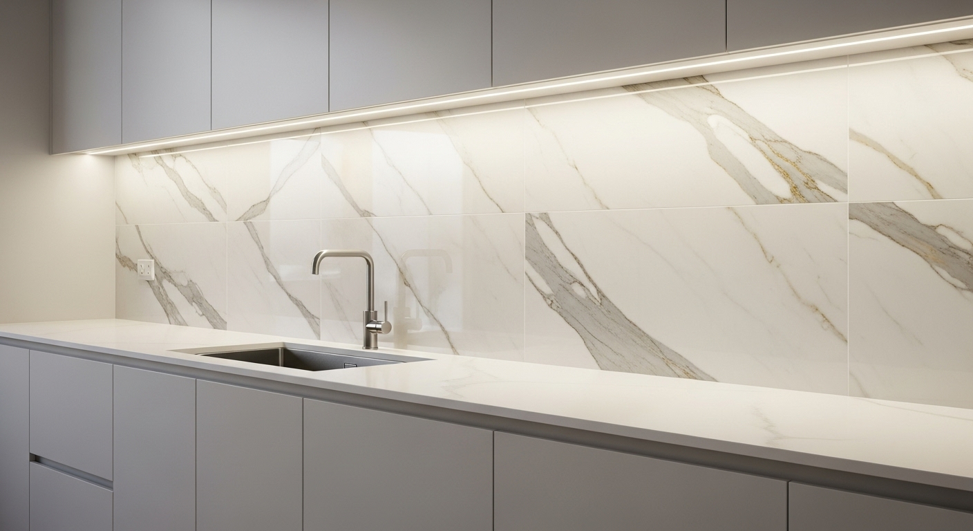 Love marble but not its price or maintenance? Marble-look porcelain offers the same elegant veining with far greater durability and affordability. These tiles bring timeless beauty to your backsplash, blending seamlessly with both traditional and modern aesthetics.