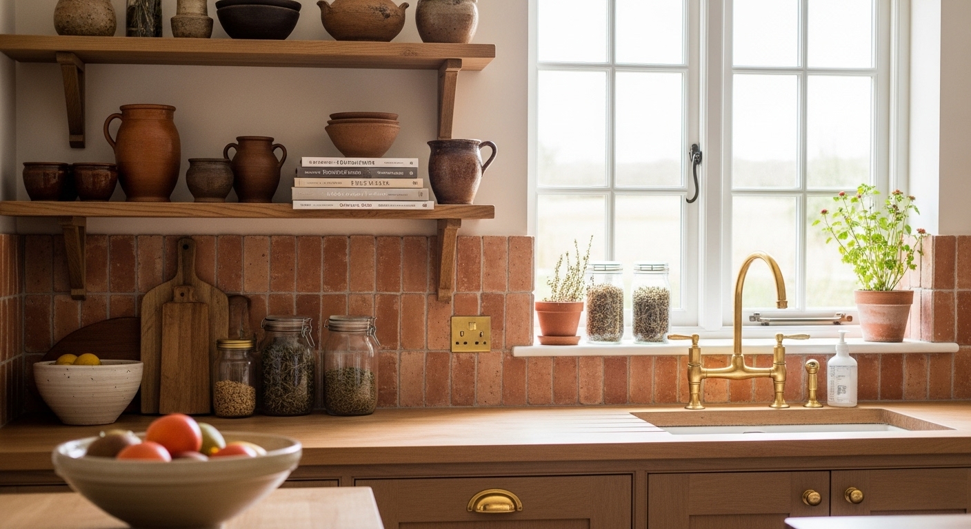 Few materials feel as soulful as terracotta. With its rich reddish-brown hues and rustic texture, it brings Old-World warmth to modern homes. Paired with cream walls and brass accents, terracotta tile backsplashes evoke Mediterranean charm. Glazed finishes offer easy cleaning while keeping the handcrafted appeal intact.