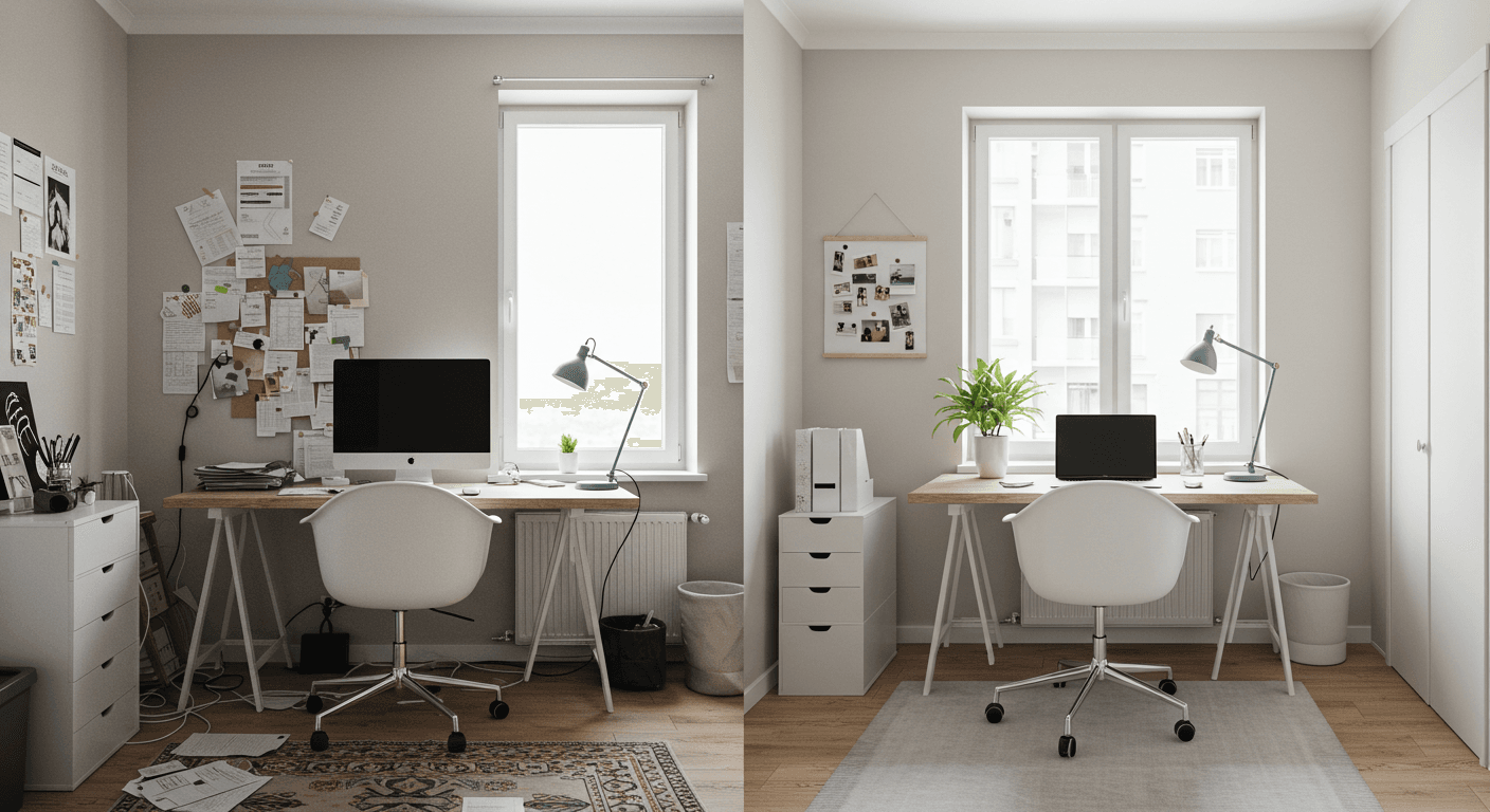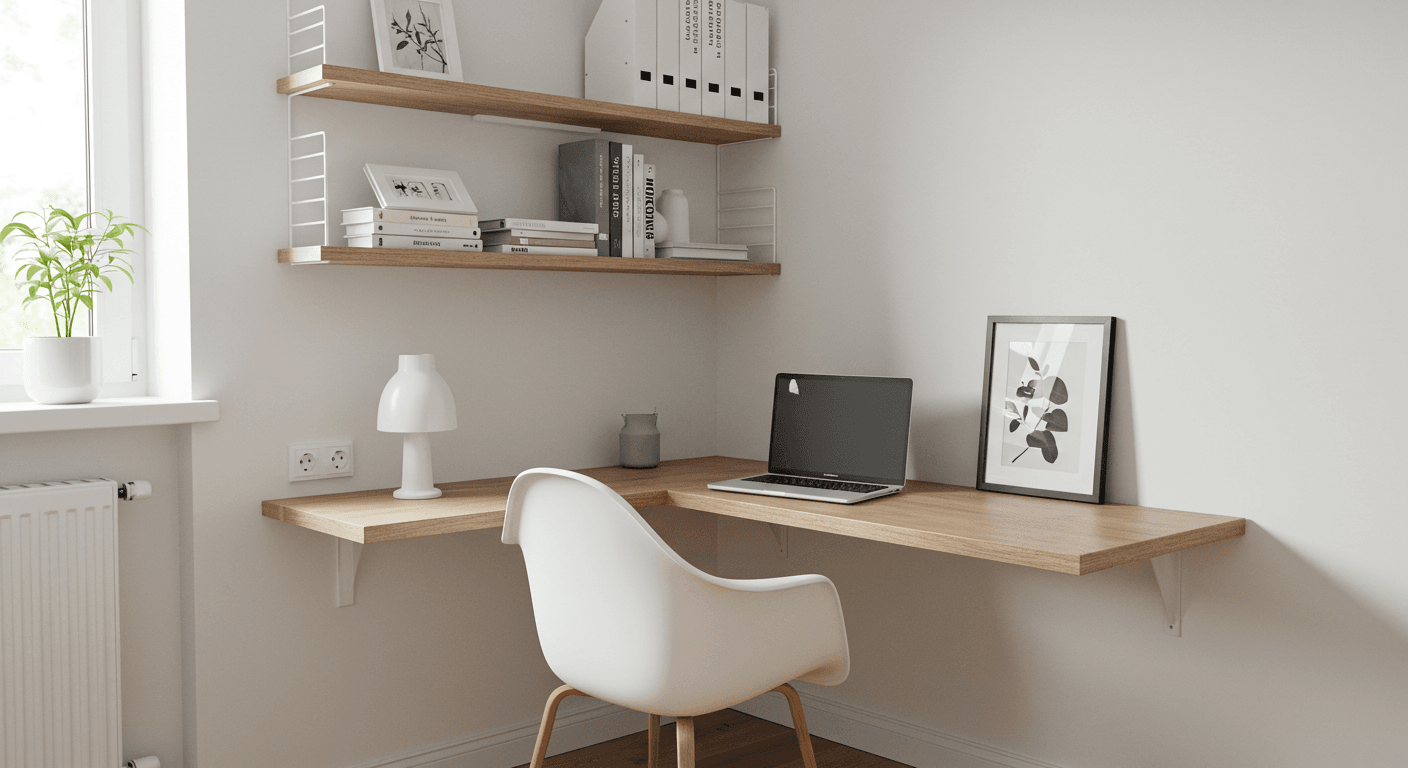Minimalism works best in small areas. A compact desk, good lighting, and wall-mounted storage are enough to transform even a corner.