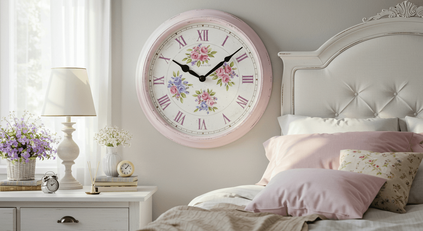 A vintage-inspired clock adds charm and function. Choose ornate designs with distressed white or pastel frames, floral motifs, and Roman numerals. Hang above mantels or dressers for a focal point. Pair with vintage accents or seasonal decor. Secure mounting and battery maintenance ensure reliability. Personalize with ribbons, charms, or surrounding décor. A vintage clock elevates your decor with timeless elegance while remaining practical.