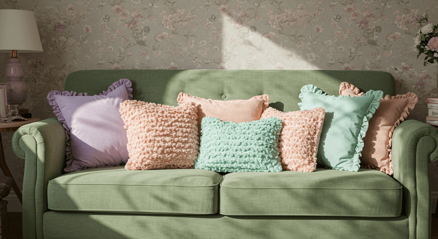 To instantly refresh your sofa or seating area, add fluffy throw pillows with charming ruffled edges. Choose soft fabrics like velvet, linen, or boucle in shades of blush, ivory, or lavender. The ruffles add an elegant yet playful detail that enhances both comfort and style. Mix textures and pastel shades for visual depth, and use different shapes such as square, round, or bolster pillows for variety. Removable covers make cleaning easy, and you can switch fabrics seasonally—linen for summer and velvet for winter. Add small details like tassels or embroidered motifs for a personalized touch. These plush pillows not only make your space look inviting but also bring a soft, feminine warmth that transforms any ordinary couch into a cozy focal point.