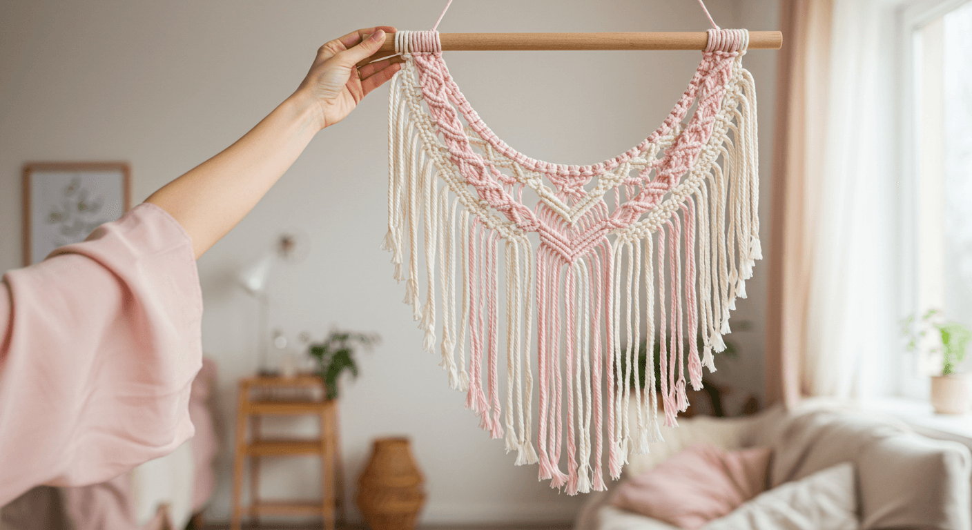 14. Handmade Macramé or Crochet Wall Hangings in Light Shades