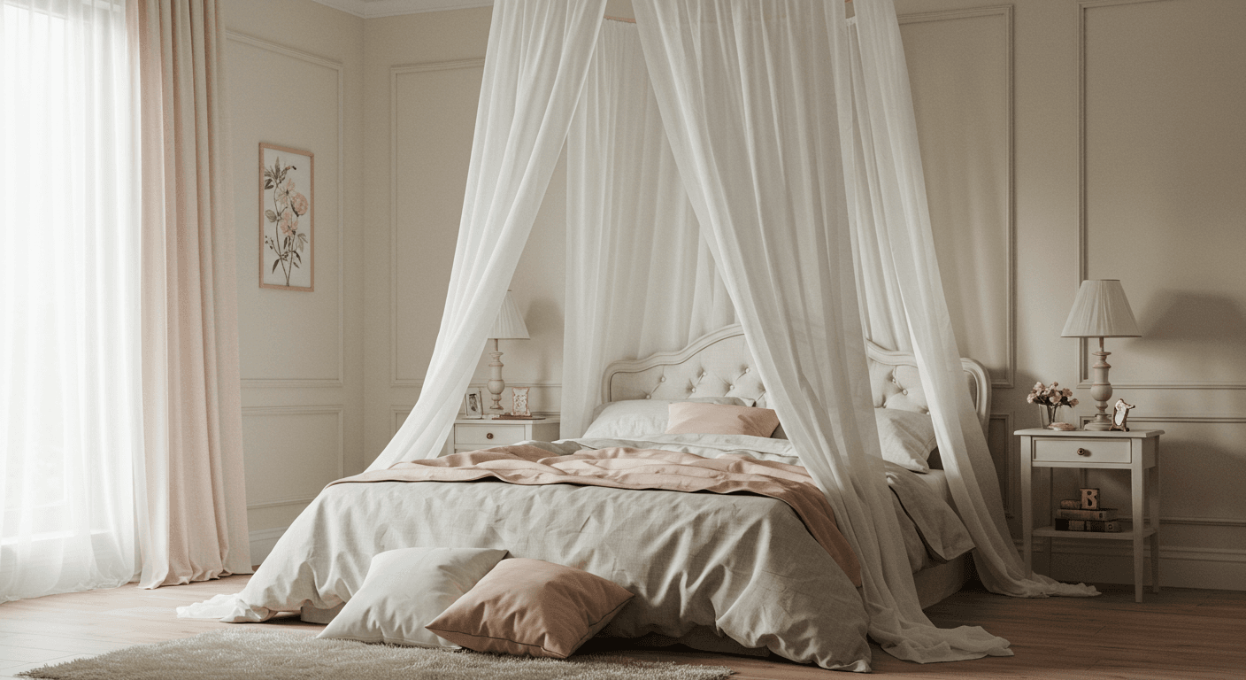 A sheer bed canopy turns your sleeping space into a romantic retreat. Draped in white, blush, or lavender, the fabric flows softly, creating a floating effect. Tie back with ribbons or let hang freely. Layer with quilts or fairy lights for added charm. Choose breathable fabrics and secure ceiling hooks or rods safely. Decorate with ribbons, faux flowers, or small charms. A canopy provides a feminine, cozy cocoon, perfect for serene nights and dreamy mornings.