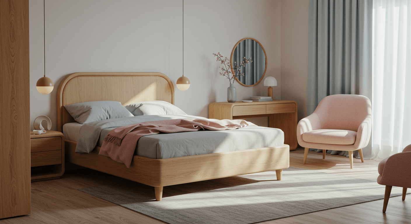 7. Light Wood Furniture with Rounded Edges and Soft Finishes