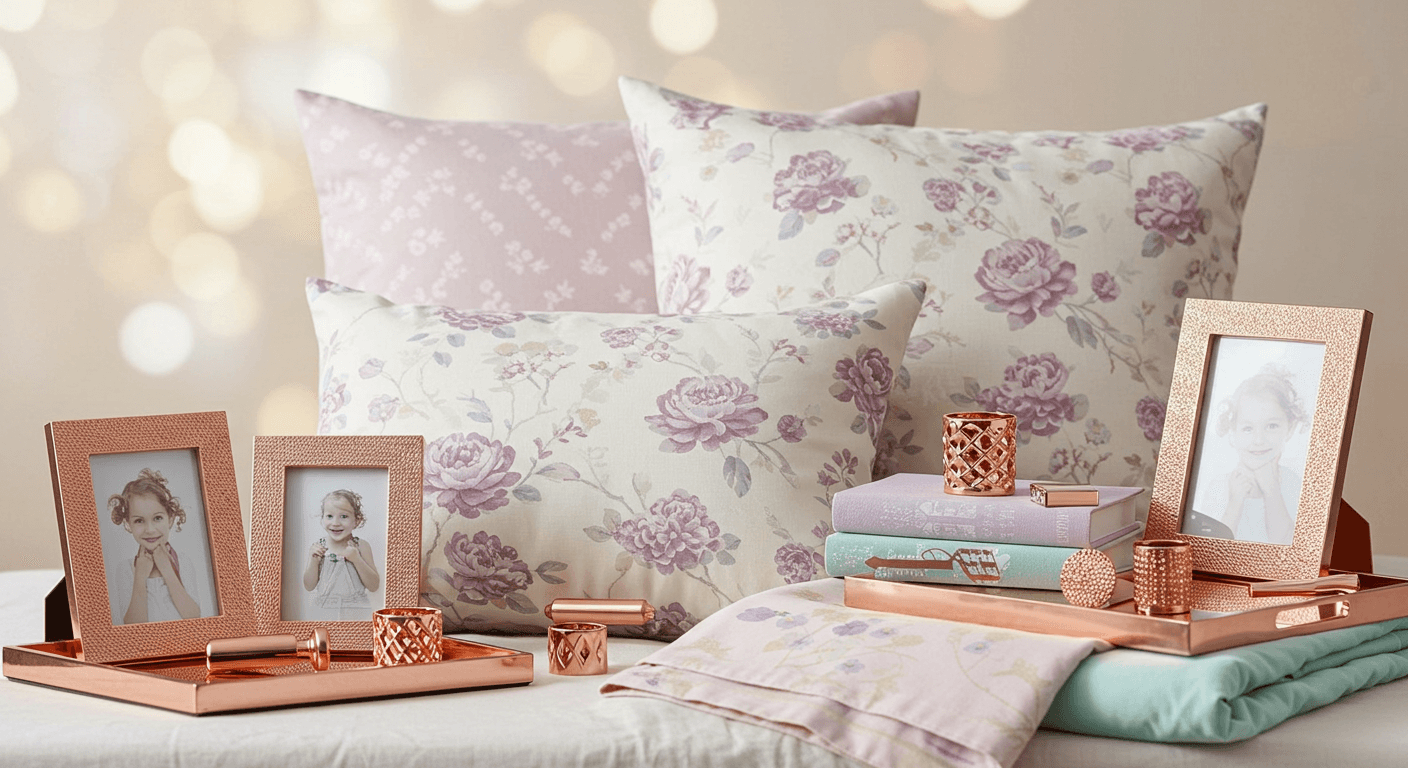 Rose gold or champagne metallic accents add shimmer and sophistication without overpowering decor. Use frames, drawer pulls, trays, or small accessories among pastel textiles and floral patterns. Mix matte and textured finishes for contrast. Choose high-quality, non-tarnish finishes, clean gently, and refresh periodically. Combine accents cohesively with soft hues. Metallic touches elevate the space with timeless elegance, adding warmth and layered richness.
