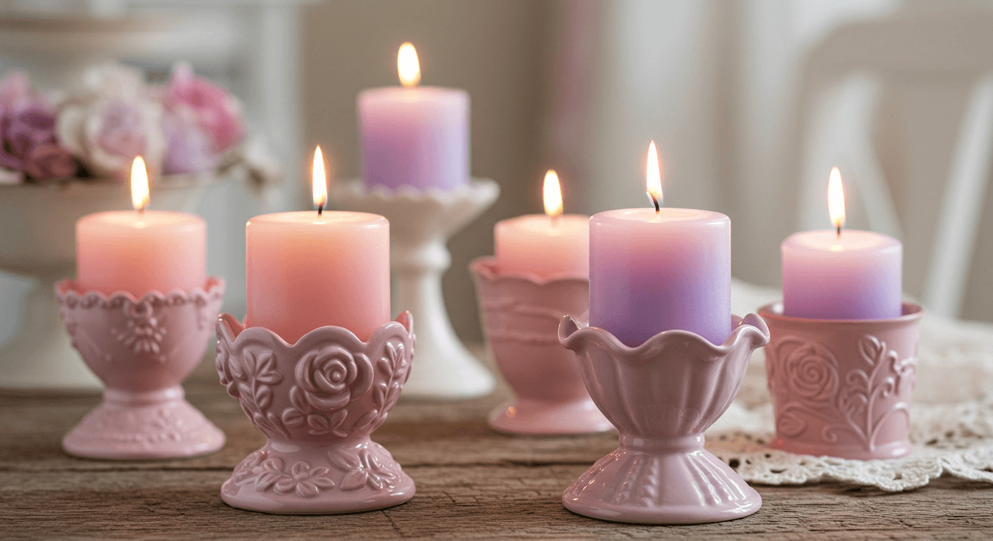 13. Whimsical Candles in Pastel or Floral Scents with Soft Holders